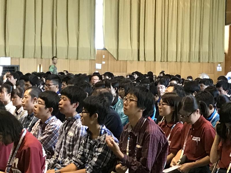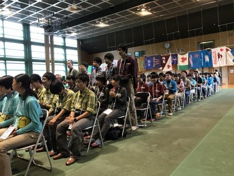 開会式は,体育館の中で行われました。全国から強者が集い,これから競い合うんだという熱気であふれていました。開会式の中では,これまでの出場回数が多い学校が表彰されていました。運営に協力している福島県の高校生も至る所できびきびした動きで活躍していました。