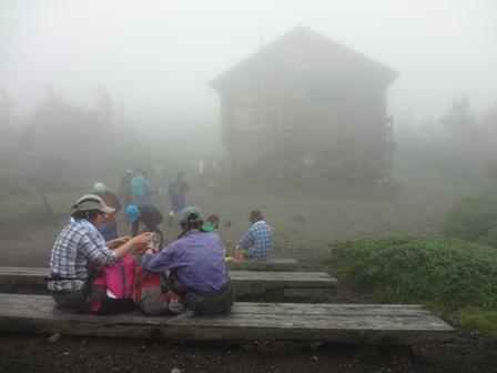 ●翌25日(水)の早朝激しく屋根をたたく雨音で目が覚めました。3時頃だったでしょうか。これは1日停滞かと思いましたが、強い雨は峠を過ぎており、午後まで荒れることはないという雨雲レーダーの情報を携帯で得て、予定通り行動を開始。所々硫黄のにおいのする山肌が特徴的でした。仙人岱や毛無岱はキンコウカやヨツバシオガマなどの高山植物が花を咲かせ、天気が苦にならない美しい山道が続きました。社会人の集団登山と登山口から相前後することとなり、毛無岱の木道は行列、酸ヶ湯温泉の仙人風呂も混み合ったのは残念でした。夜は岩木スポーツセンターキャンプサイトにテントを張り、バーベキューを楽しみました。