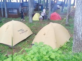 (8月2日朝6時頃、三股登山口よりいよいよ登山開始!) (8月2日13時頃、蝶ヶ岳テントサイトに到着)