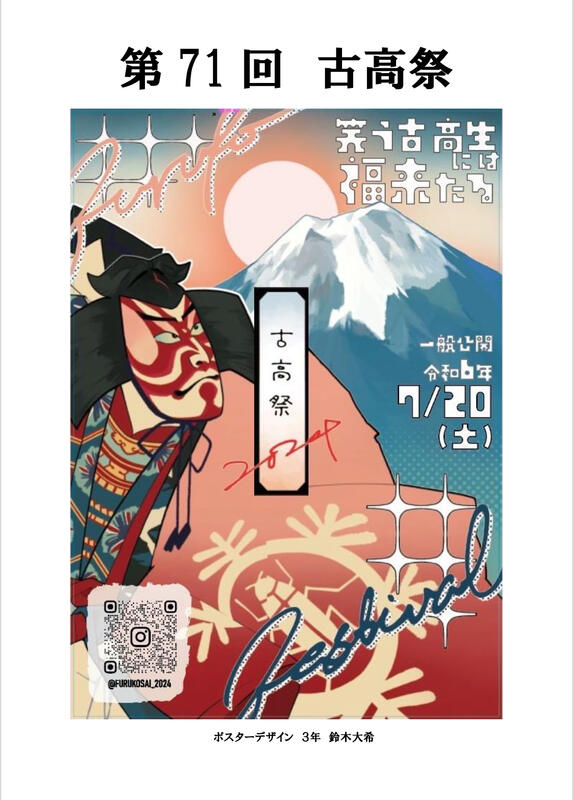 7月18日(金)・19日(土)の2日間にわたり、古高祭が開催されました。今年のテーマは「来たれ 古高黄金時代」 県北の猛者(ますらお)らしい勇ましさを感じます。「まもなく創立130年 先輩方が築いてきた歴史と伝統を超えさらなる飛躍を目指し新たな時代を創造したい」との強い思いを表現したとのことです。