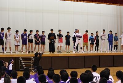 校長からの激励、生徒会長からの慢心を戒める挨拶、各部部長からの決意表明の後、応援団長のリードで各部選手を激励する校歌とエールが会場に轟きました。