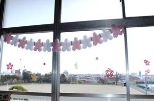 図書室の窓にも、様々な桜が咲きました。