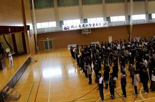 全体会では、校長先生・1学年主任・生徒会長からのご挨拶、教務・進路指導・生徒指導・保健・事務各部より