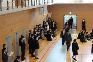蛍雪会館脇や掲示会場前では、応援団はじめとする在校生も、発表を待ち構えています。