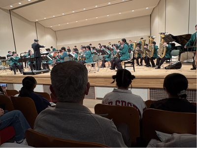 今年のテーマは「響森」森に生える多様な植物が遠くから見ると一つにまとまっているように、個々の性格を大切に一つの豊かで深みのあるサウンドを創り上げるという思いを込めて決めたとのこと、テーマ通りのサウンドを奏でてくれました。ファーストステージはコンクール使用での演奏、迫力満点の演奏に圧倒されました。セカンドステージはソロ演奏を取り入れながら軽やかな演奏、聴衆と一体感を感じました。サードステージはマーチングを取り入れての演奏、動きながら周りと合わせるのは大変なこと相当練習したと思います。涙を拭いながらの演奏に感動しました。