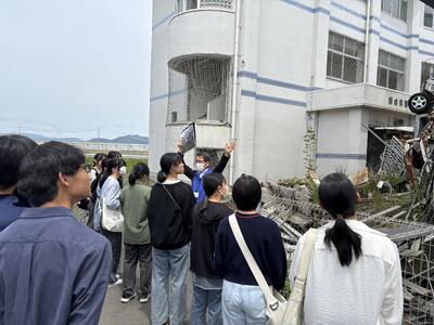 5月27日火曜日、2学年被災地研修が実施されました。クラス毎に研修計画を立案し、山元町・気仙沼市・石巻市方面などさまざまな被災地に出向き、その状況と復興の現状を視察しました。東日本大震災から14年を経過してもなお、災害の傷あとが生々しく残っている遺構の崩壊度合いの凄惨さを目の当たりにしました。また、当時の記憶が強く残っている語り部さんの話を聞く機会があったクラスもあり、とても印象に残ったという生徒もいたようです。被災県民として防災・減災の意識を高める良い機会になりました。