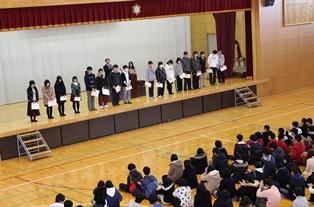 3校時、体育館において賞状伝達と全校集会が開催されました。