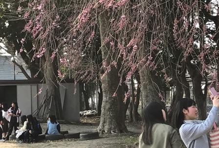 ようやくシダレザクラが咲き始め,写メを撮る姿もあちこちで見られました