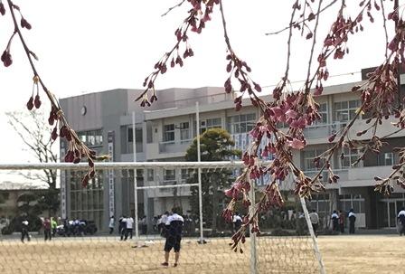 やや肌寒い日和ながら,校庭のシダレザクラの花は満開になりました。1年生が学年閉鎖から戻ってきて,本日7校時のLHRでは,全校が揃って応援練習が再開されました。