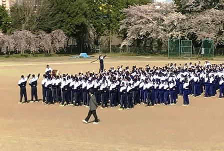 やや肌寒い日和ながら,校庭のシダレザクラの花は満開になりました。1年生が学年閉鎖から戻ってきて,本日7校時のLHRでは,全校が揃って応援練習が再開されました。