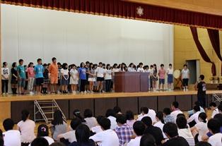 8月19日(水)まで夏季休業となるにあたり、体育館において全校集会・賞状伝達が行われました。