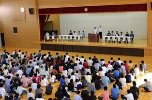 部活動の各種大会や夏休み読書感想文コンクールの表彰が行われました。