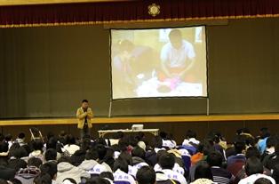 講師として、本校13回生 鹿野氏をお招き致しました。 『世界の中の日本、そして日本人』というテーマで、