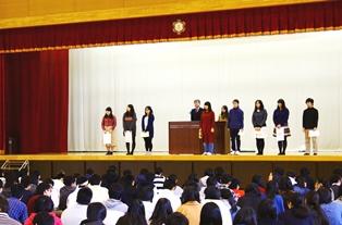 賞状伝達は、合唱部・吹奏楽部・文芸部等の各種大会・コンクールの成績と