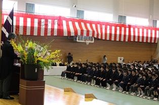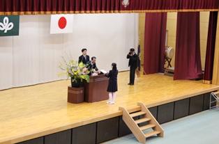 (同窓会より記念品贈呈)                          (新入生宣誓)