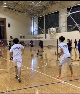 月、水、金、土、日の週5日で活動しています。主な練習メニューは基礎打ちやノック、半面でのパターン練習などシャトルを使った練習の他にもフットワークなどもしています。コーチをはじめとした指導者が不在のため生徒主体で活動を進めています。また、女子バドミントン部と共同で体育館を使っているので少し練習内容は限られてしまいますが、部員同士で協力し合い効率的に取り組み各種大会に出場しています。