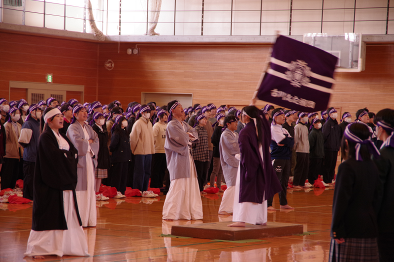 応援団・生徒会執行部も「真の古高生」にするべく、春休み返上でエールの練習を繰り返していました。また、新入生が登校する前から会場を準備してもいました。厳しい声がけはするものの、新入生一人ひとりはちまきの結び方や手の組み方など丁寧に手を取って教える姿はなんとも微笑ましい光景でした。